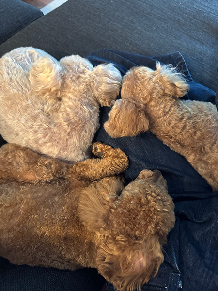 南さんは現在、シャンティ、ジョーイ、サランという三匹のわんちゃんと生活中。