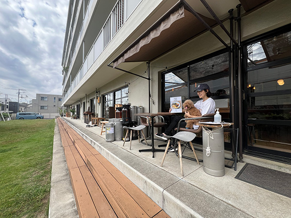 昼も夜も、テラス席と芝生スペースでワンちゃんと一緒に楽しむことができます。