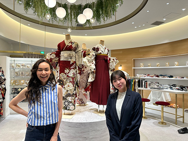 お店には常時300着以上の振袖があり、今は白地や赤色のものが人気なのだそうです。