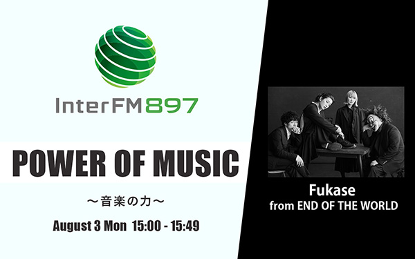 SEKAI NO OWARIのグローバルプロジェクト、END OF THE WORLDのボーカルFukaseが『InterFM897 POWER OF MUSIC』のミュージックセレクターとして登場!