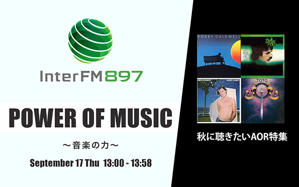 9/17(木)13:00からの約1時間は、夏が終わり、これから本格的な秋に向けて聴きたいAORを特集。