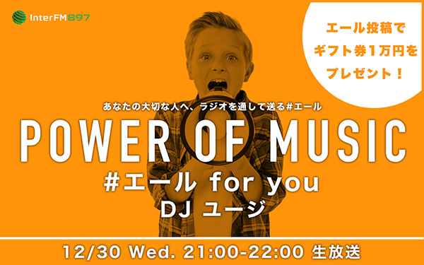 12月30日(水)夜9時から生放送のスペシャルプログラム『POWER OF MUSIC -#エール for you-』に、コメントゲストが出演!!